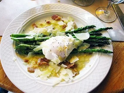 The food I ordered was wonderfully seasonal: I started with the dish you see at the top of this post–that’s roasted asparagus with a poached egg, pancetta and Parmesan. It floated in a sea of lemony butter and it was an excellent harbinger of a spring that took a very long time to come.