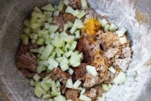 I mixed that in just until incorporated and then I scratched my chin and thought about flavor possibilities. I saw an apple. I saw a lemon. I thought “APPLE PIE COOKIES” and brought some cinnamon, nutmeg and cloves to the party.