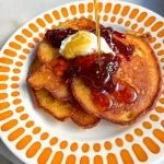 When I asked her to send me a recipe to make, she very quickly responded with the pancake recipe, giving me instructions for making my own whey. I’ll include it in the recipe below, but it’s as simple as buying two quarts of full-fat plain yogurt (not Greek) and straining it overnight with a sieve lined with cheesecloth in the fridge.