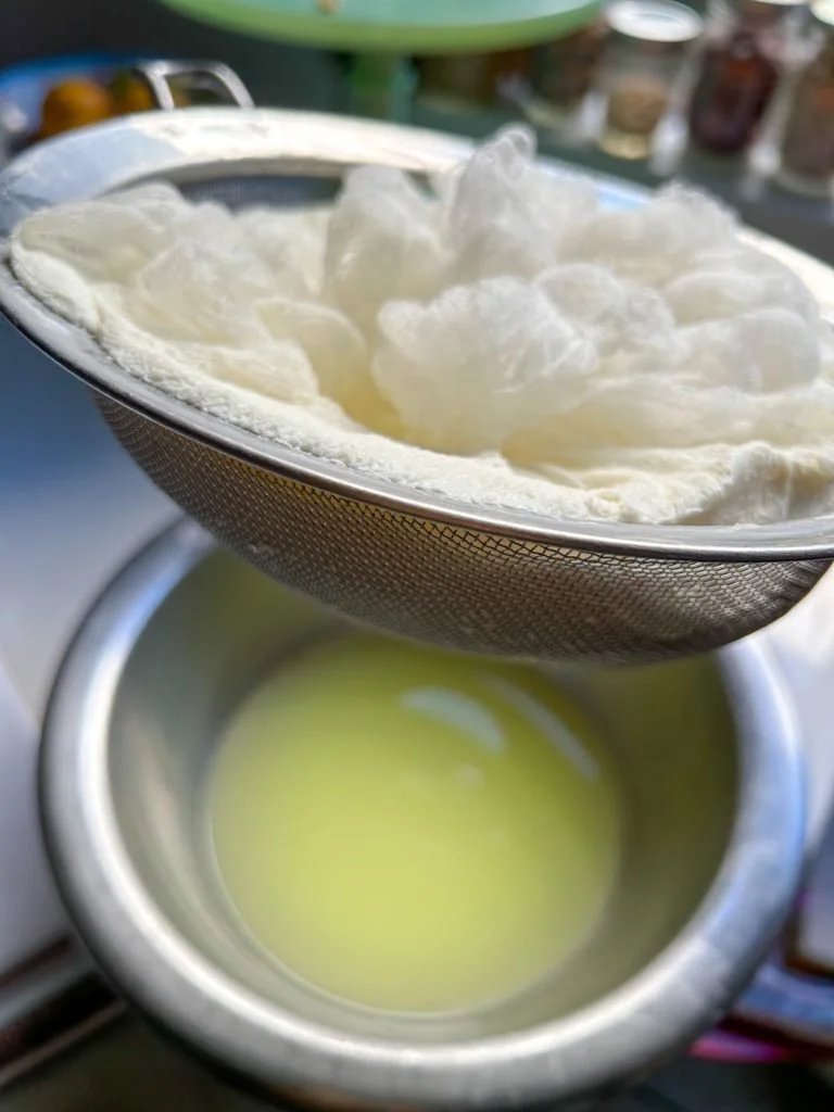 The secret is the milky white substance that collects in the bowl underneath the sieve when you strain yogurt overnight in the fridge. If you’ve never done this, you’ve never made labneh, which is a real shame because labneh is like yogurt taken to the power of eleven. It’s thick and creamy and works as a dip, a spread, even on its own as a base for fruit and granola. But we’re not here to talk about the labneh, we’re here to talk about the whey!
