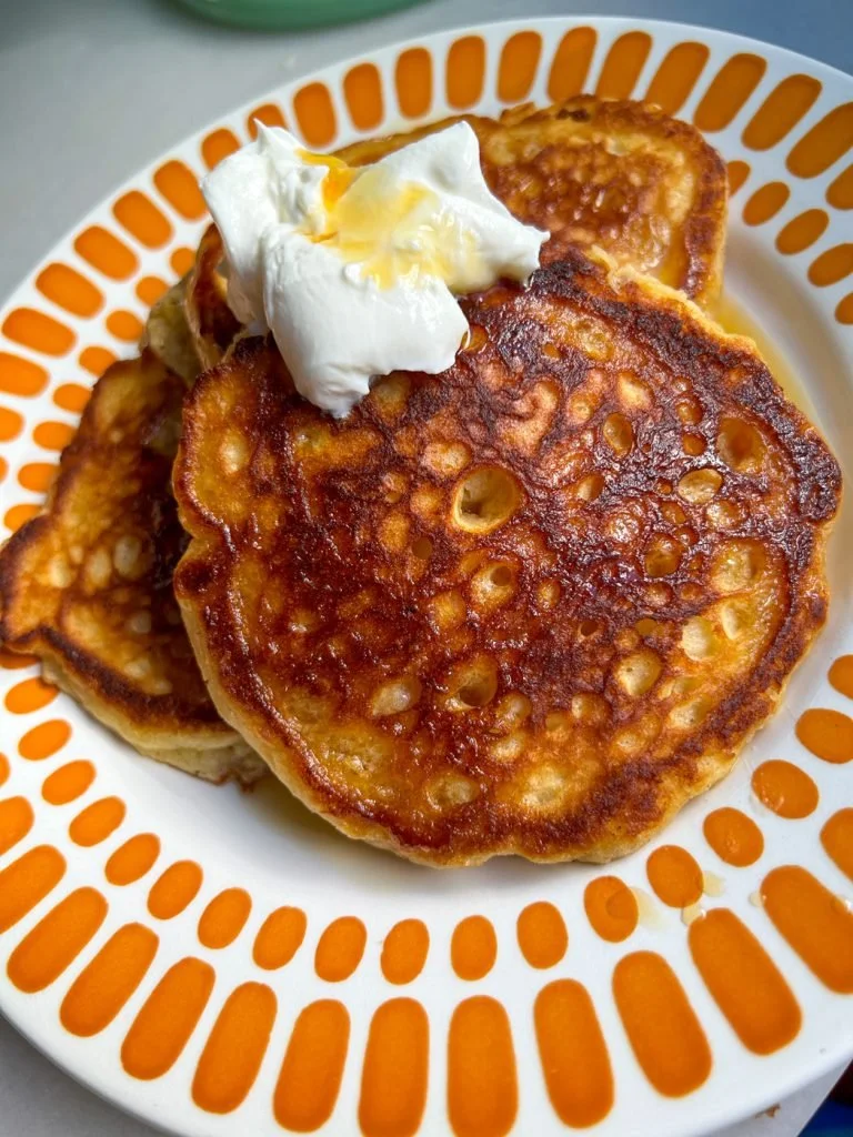 If they remind you of buttermilk pancakes, you’re in the right ballpark: buttermilk pancakes are fluffy and crispy too (again, because of the acid). But the key difference here is that the whey has none of the heaviness of dairy. It’s lighter yet still contains all of the chemical properties you love about buttermilk. And look at how gorgeous these look hot out of the skillet.