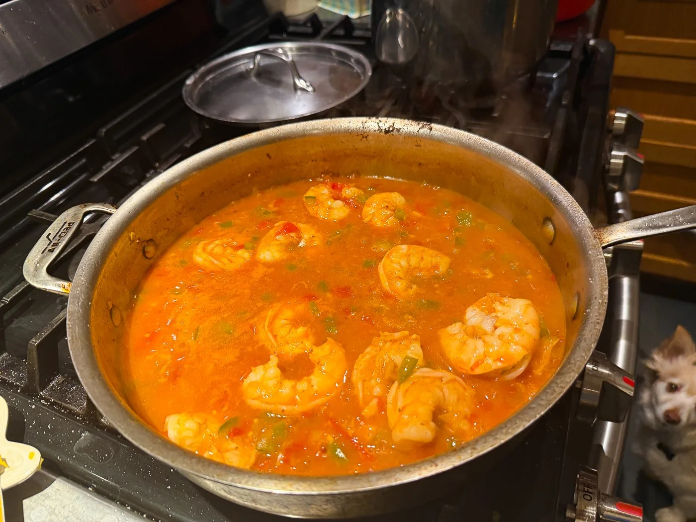 Winston knows a good thing when he sees it. You’ll know the shrimp are done when they’re firm; immediately stop cooking, or they’ll get tough.
