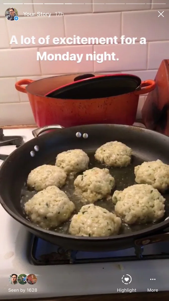 It’s just a much easier way for me to share my cooking adventures, and also much more exciting, especially with the stories feature where I shoot videos as I go. For example, last night I turned the spring risotto you see above (which I’d documented in Stories on Sunday) into risotto cakes by shaping them into patties and frying them in oil. The whole thing is captured in real time: