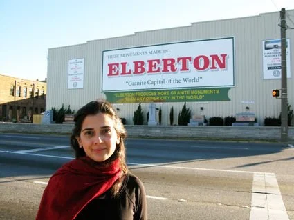 With a population of approximately 5,000 people, Elberton is the granite capital of the world. Indeed, when you drive into town you’ll see a display of gray granite tombstones and a big sign that says, “Elberton produces more granite monuments than any other city in the world.”