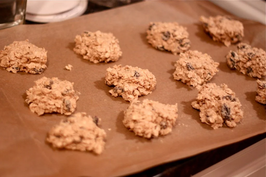 4. On to parchment lined cookie sheets scoop the cookie dough (I like to use an ice cream scoop, though mine broke recently so I used two large spoons).