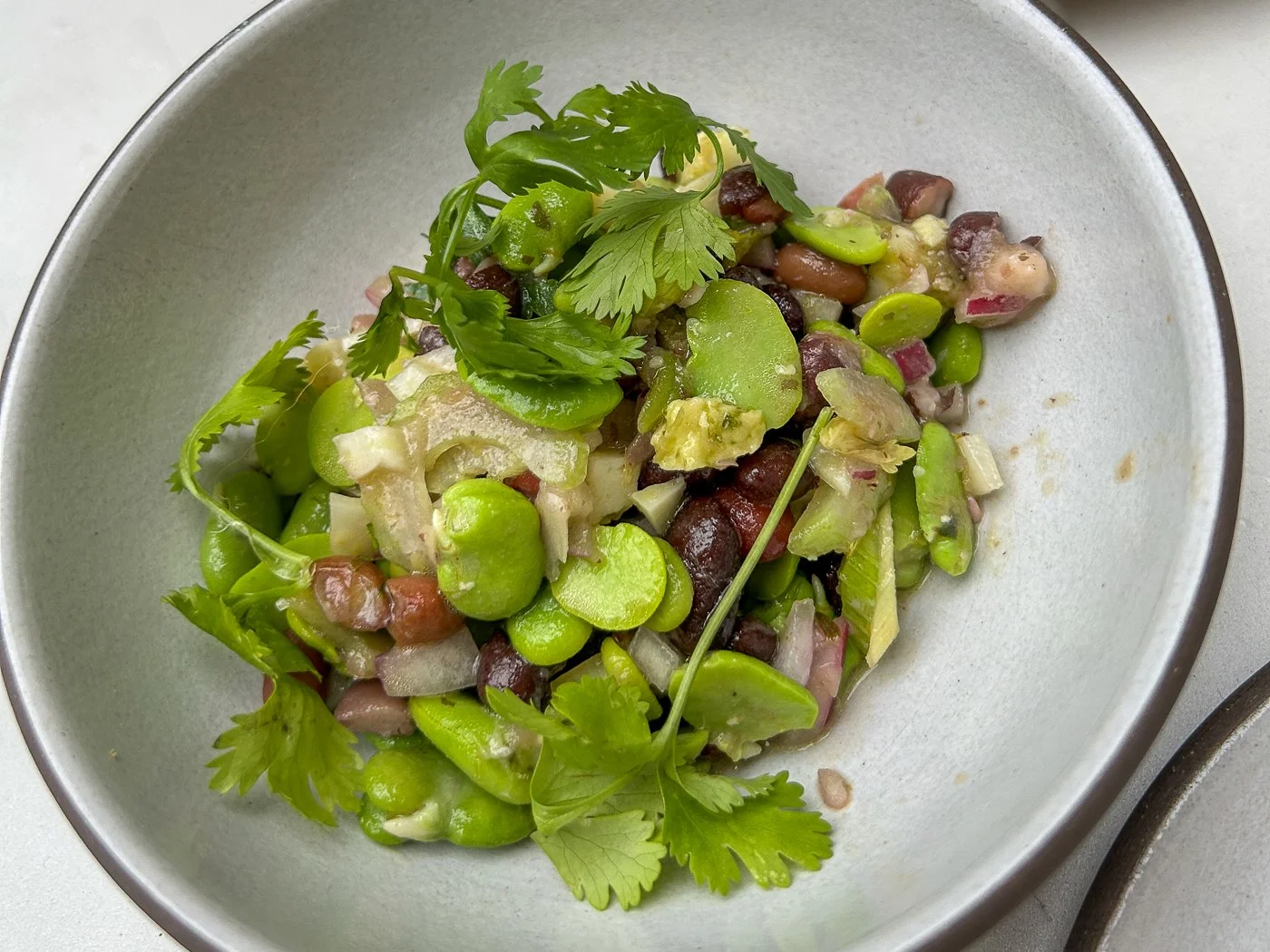 It’s a twist on the traditional fava and Pecorino salad, with celery, onions, and an assortment of other non-fava beans.