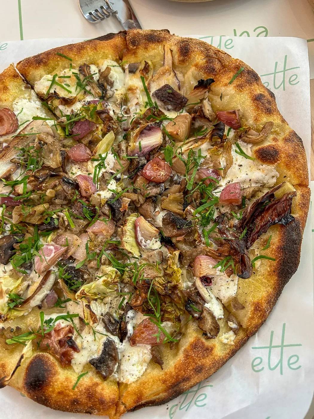 For our entree, we shared a mushroom pizza that had an unassailable crust and taleggio cheese, which made it so much more interesting than a typical pizza.