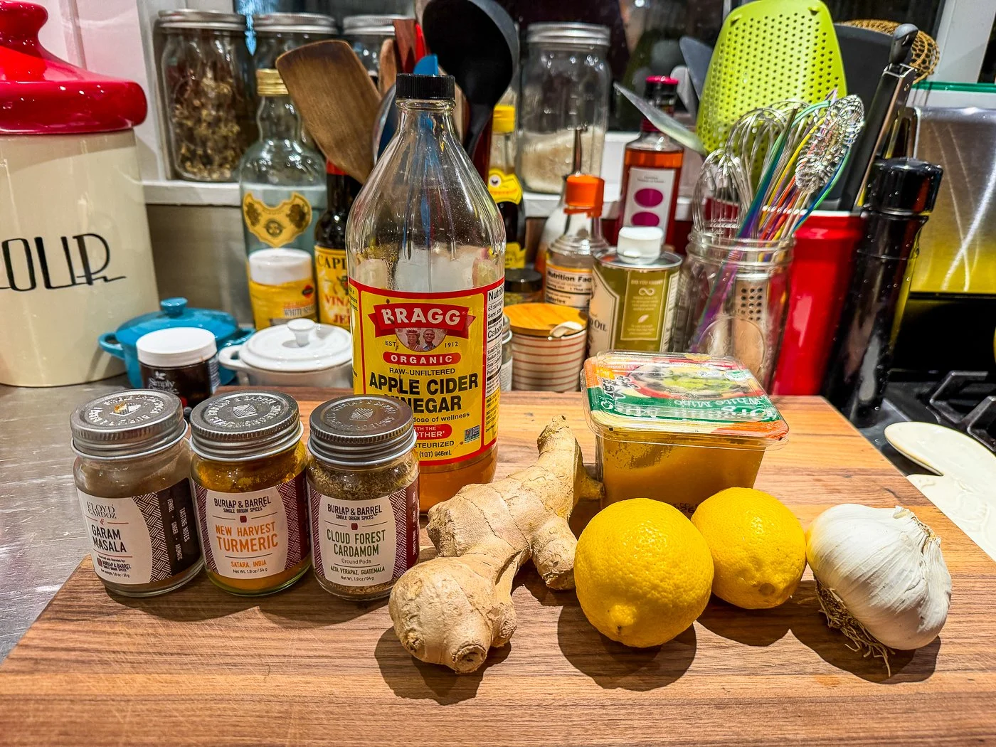 What makes this recipe unique is the combination of a Japanese powerhouse ingredient (the miso) with an Indian powerhouse ingredient (Garam Masasla). If you’ve never made or used Garam Masala, it’s a fragrant mixture of cumin, coriander, cardamom, and black pepper, plus cinnamon, cloves, nutmeg, bay leaves, etc. This particular recipe has you mix the two together with lemon zest, ground ginger, lots of garlic, turmeric, and apple cider vinegar which you pour over skinless, bone-in chicken thighs that you marinate in lemon juice, salt, and cardamom for 30 minutes.