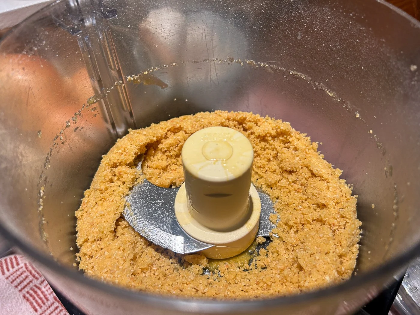 - To make the crust: Place the almonds, flour, sugar, and salt in a food processor and process until the nuts are finely chopped. In a small bowl, lightly whisk together the egg yolk, melted butter, and vanilla extract. Add the liquids to the nut mixture and pulse several times to moisten and combine the ingredients thoroughly. The mixture should come together easily between your fingers when pinched.