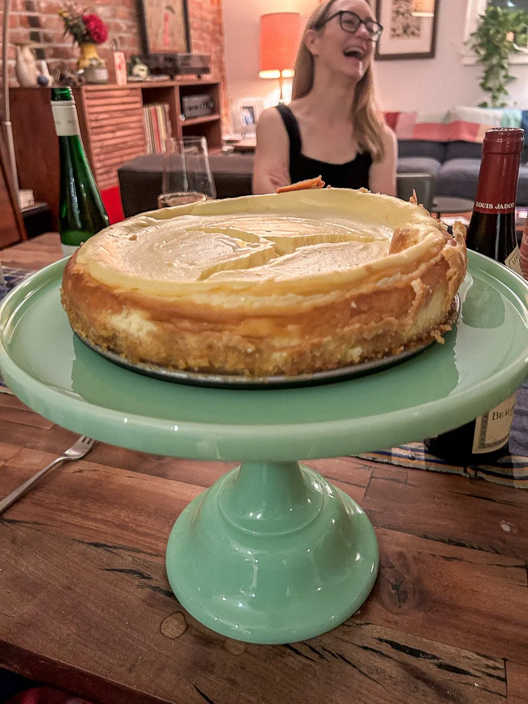 There are two main headlines about this recipe: (1) the huge amount of ricotta that goes into it (the fresher your ricotta, the better… look for Bellwether Farms, though I supplemented with some cheaper stuff); (2) the fact that you don’t have to bake it in a water bath like you might with a regular cheesecake makes it so much easier.