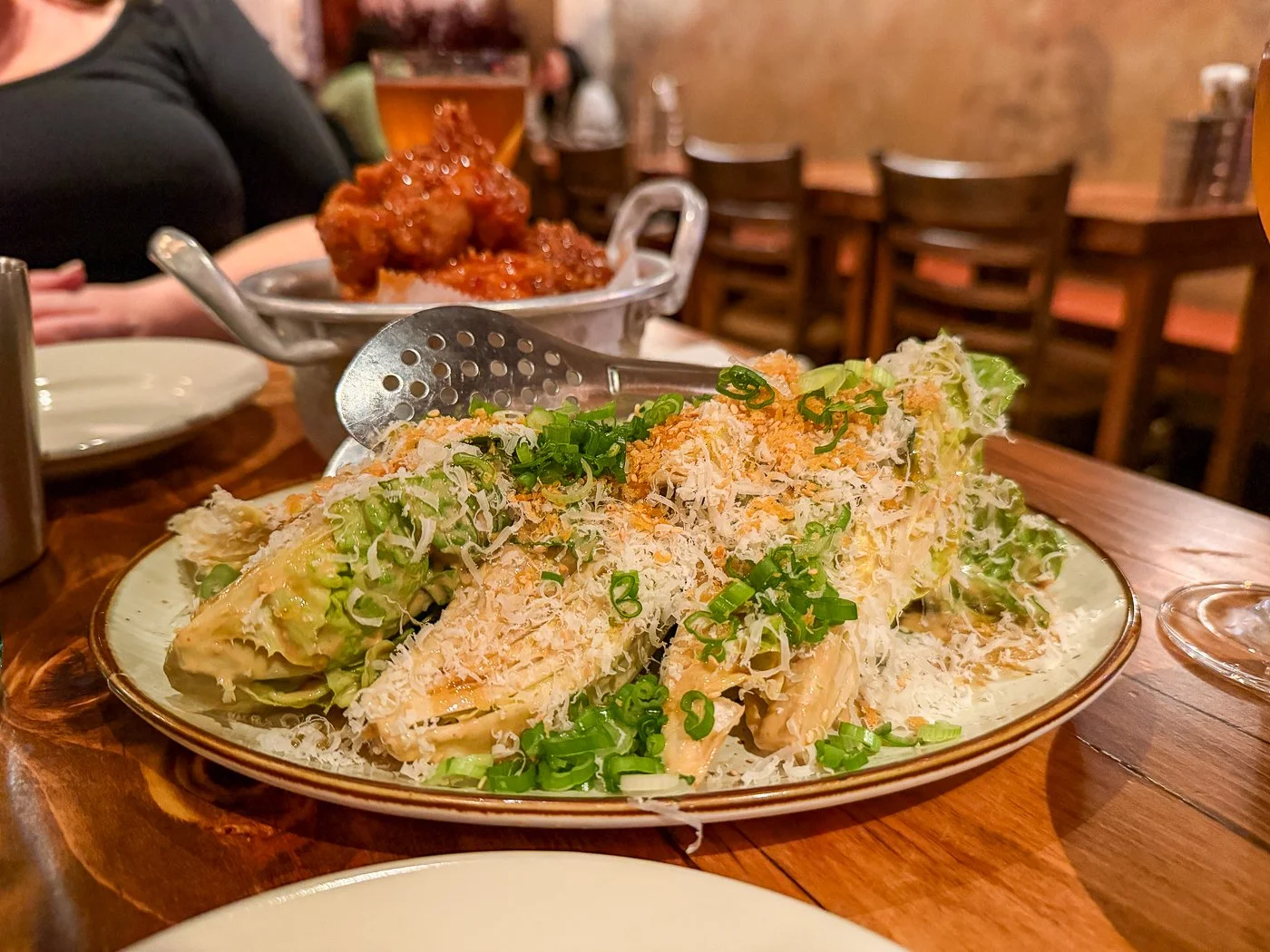 Deb said they definitely soaked the lettuce in ice water, which is what made it so crisp; as for the dressing, we detected miso and sesame oil. That combo with the Parmesan? Pure brilliance.