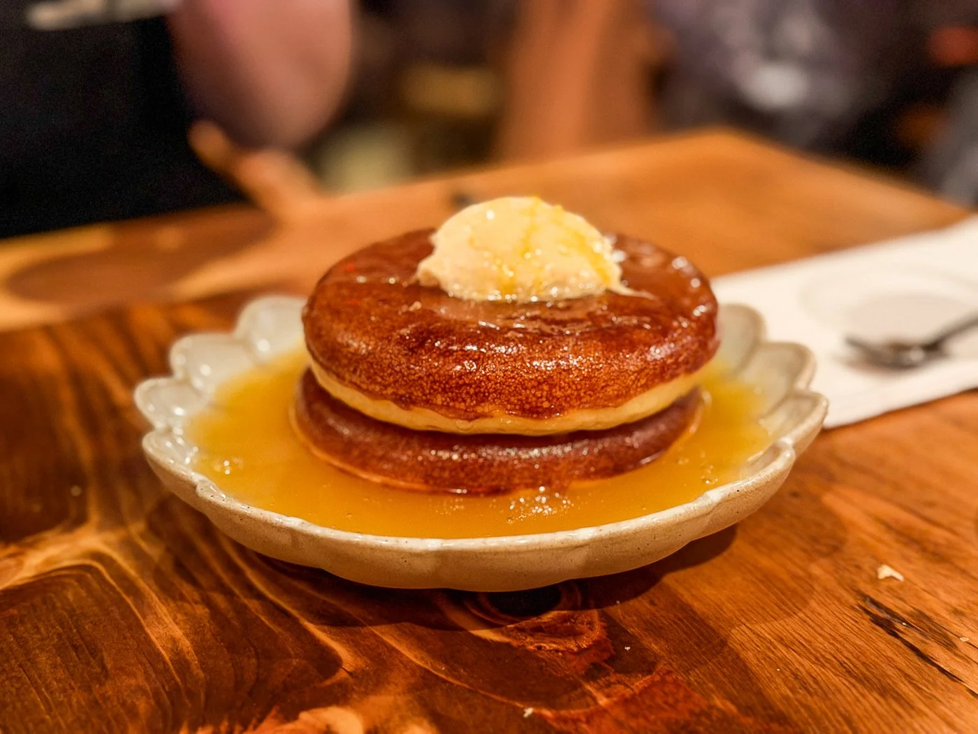 This was plenty of food for two people and we didn’t need to have dessert — we had Patti Lupone to get to — but then we saw The Pancake.
