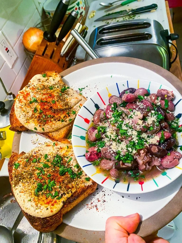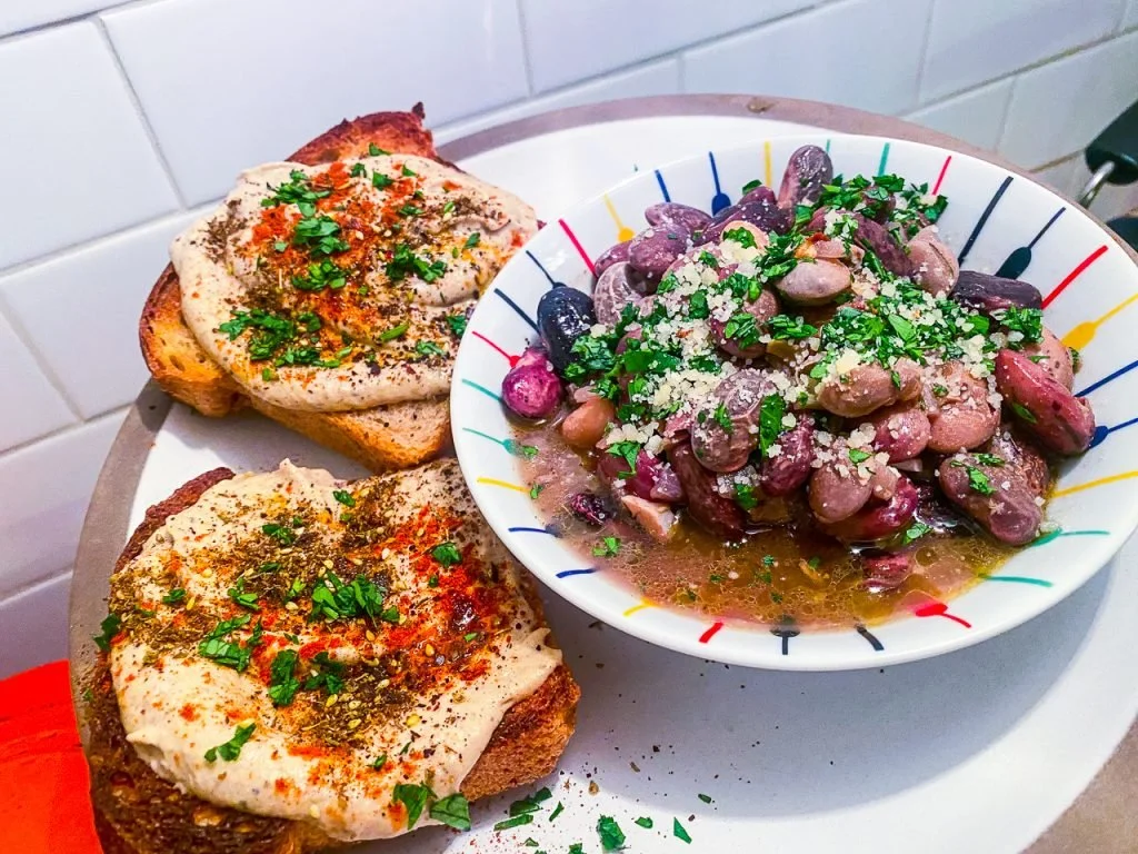 That was toast one! Now for toast two, the Tuesday night toast: Baba Ganoush Toast with Scarlet Runner Beans.
