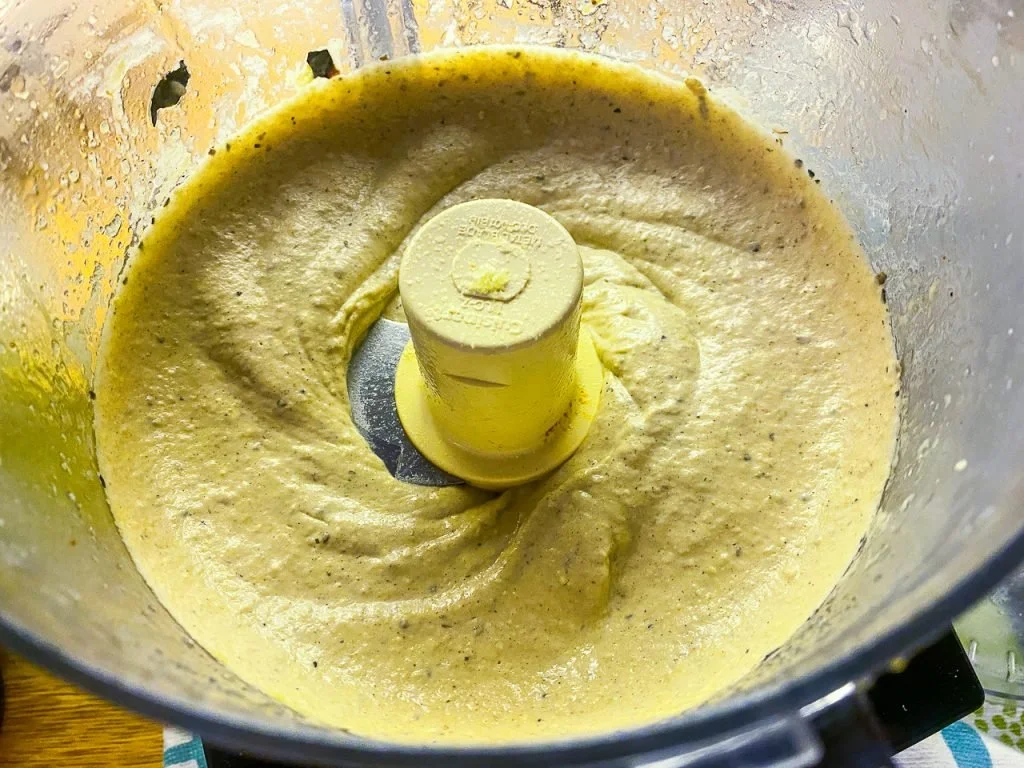 Puree that for a few minutes until it’s smooth and thick. If it’s not thick enough, add more tahini. And taste for acid and salt (more lemon juice and salt never hurt a baba ganoush). Look how smooth.