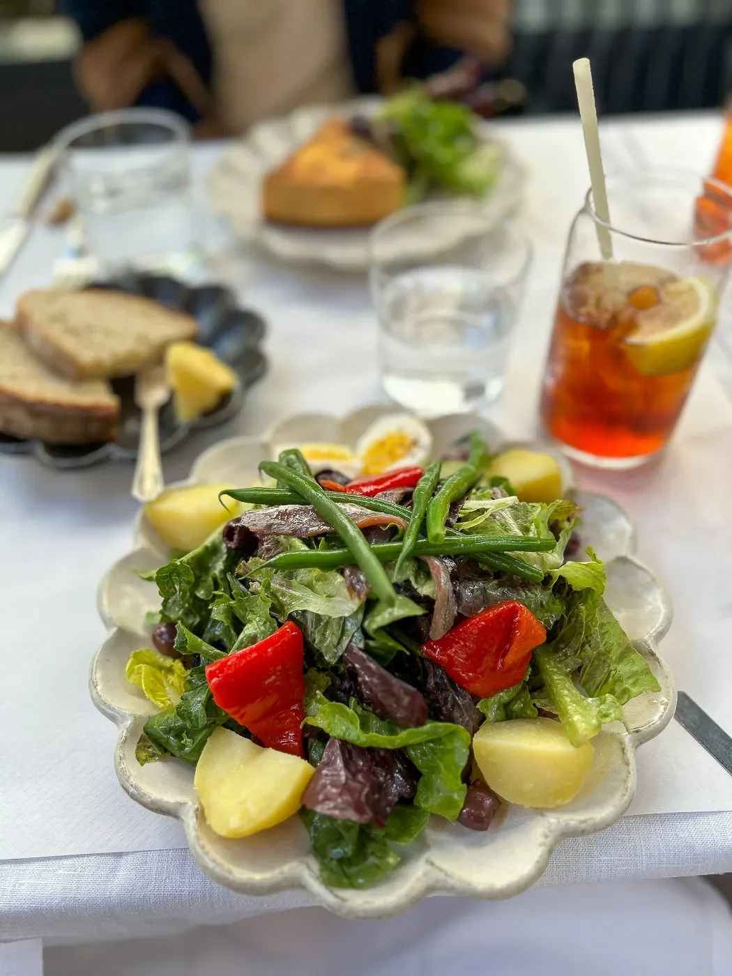 That quiche looked and tasted textbook perfect. I had the Salad Nicoise, my second of the week, and it was artfully presented: