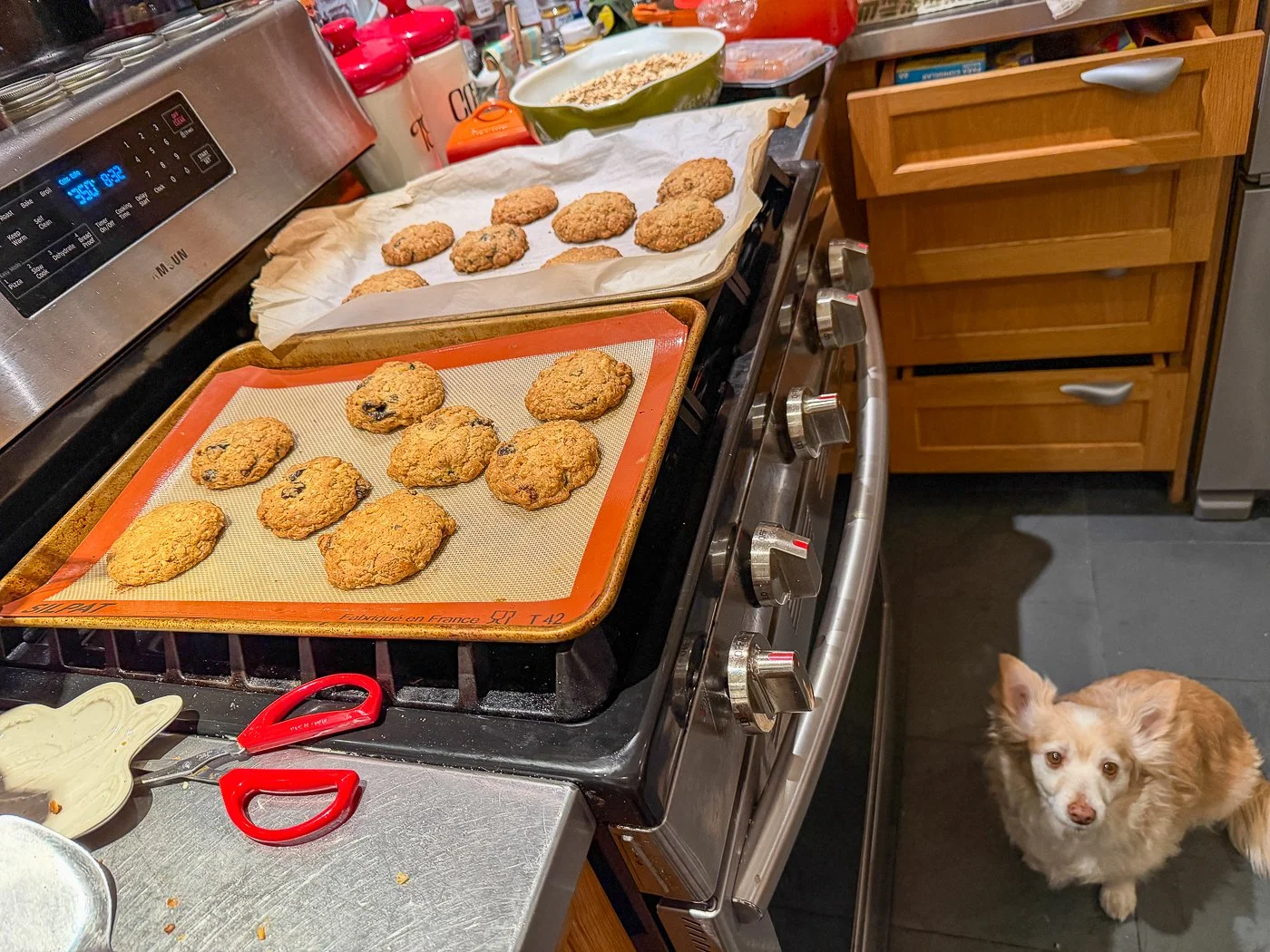 The cookies are full of contrasts: they’re salty, they’re sweet; they’re fruity, they’re nutty; they’re wholesome, they’re trashy; they’re crispy, they’re soft.