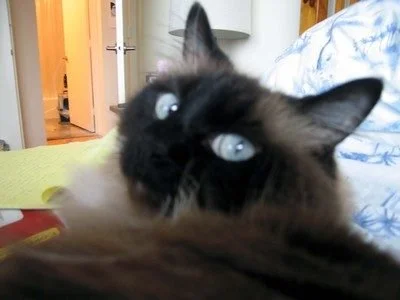 Yes, if you had chosen http://www.nakedjew.com for your site name things certainly would be different around there: you certainly wouldn’t be able to let Lolita sit on your lap while you snapped her picture.A sudden, cat-startling noise and….ouch!