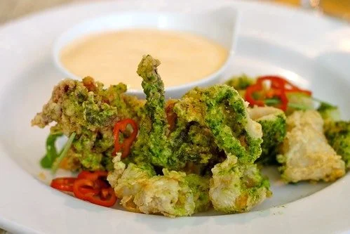 My first course is the one you see above; it was calamari dusted with basil salt served with a citrus chili dip. It was zesty and spicy and surprisingly light, despite being deep fried.