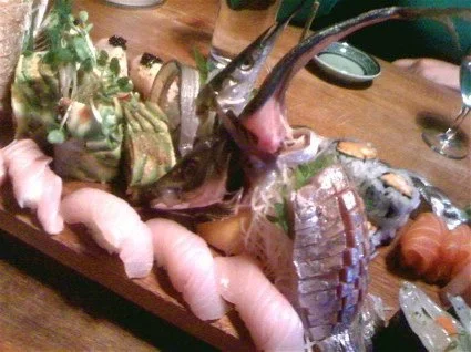 Then, surrounding the three whole fish, were dragon rolls, sashimi of salmon and tuna, there was fatty tuna belly–toro–(a true delicacy), and much much more–so much more that we couldn’t help but devour the whole thing faster than anyone thought we would.