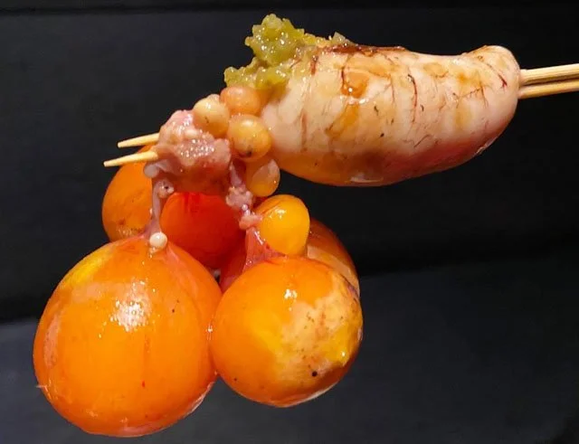 Genjiro explained that they were chicken ovaries and possibly testicles (“boy parts and girl parts” was how he put it) and there was no denying how expertly these two elements had been fused together. It was the first time we’d ever eaten anything like it — almost like biting into a water balloon filled with egg yolks — and we’re not sure we’ll be rushing out to eat it again, but we’re so glad we tried it.