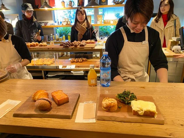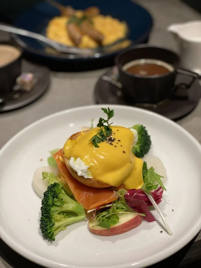 It may look like a jail cell, but it was actually very comfortable and brilliantly designed. You can’t see, but to the right was an extremely modern bathroom with a Japanese toilet (we fell in love with Japanese toilets) and a spacious, almost luxurious, shower. The room was minimalist but had everything that we needed. Plus, breakfast was included and we enjoyed it every day in a little salon — a black, enclosed space — where we were doted over and every dish was a dreamy version of itself (see: the Eggs Benedict below).