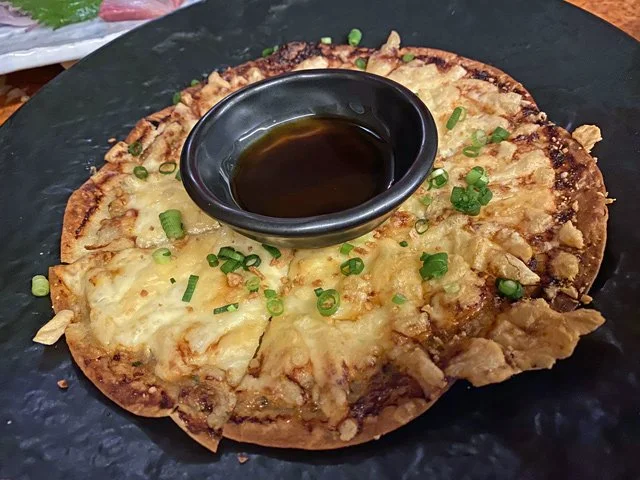 …and gyozo pizza: like the inside of a dumpling on a crispy thin crust.