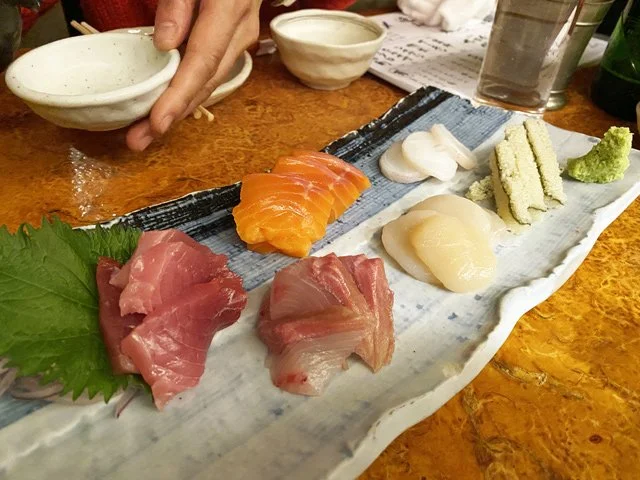 We drank sake and ate casual sashimi…