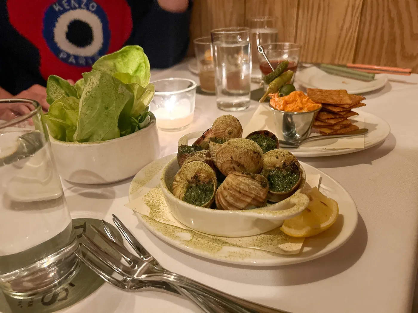 The escargot was buttery and flavor-packed and served with lettuce leaves to make little wraps:
