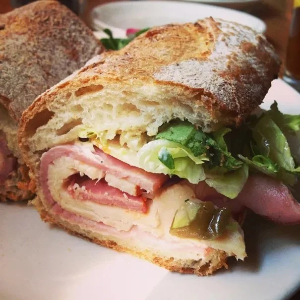 That sandwich you see towering above you is called the Stella Hero from Stella Barra Pizza, where Craig and I went for lunch before seeing Gone Girl this past Sunday. The question isn’t “what’s in that thing?”, the question is: “What isn’t in that thing?” It’s got smoked ham, turkey, capicola (cured pork shoulder), tomato, Caciocavallo cheese, Giardiniera (a spicy pickled condiment), and lettuce. It’s a sandwich for the ages, served on warm crusty bread that’s a perfect foil for all the soft meats and cheese inside. There really isn’t a bad thing to say about it, except this: it took 30 minutes to get to our table.