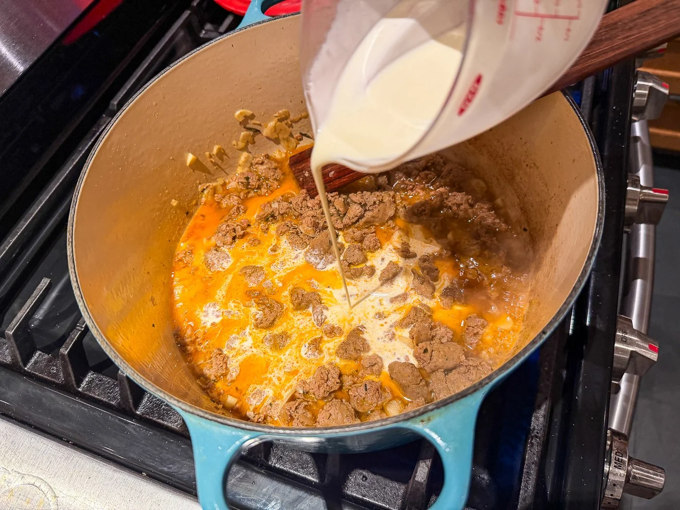 From there, you add white wine (I used an Italian one) and, gird your loins: heavy cream.