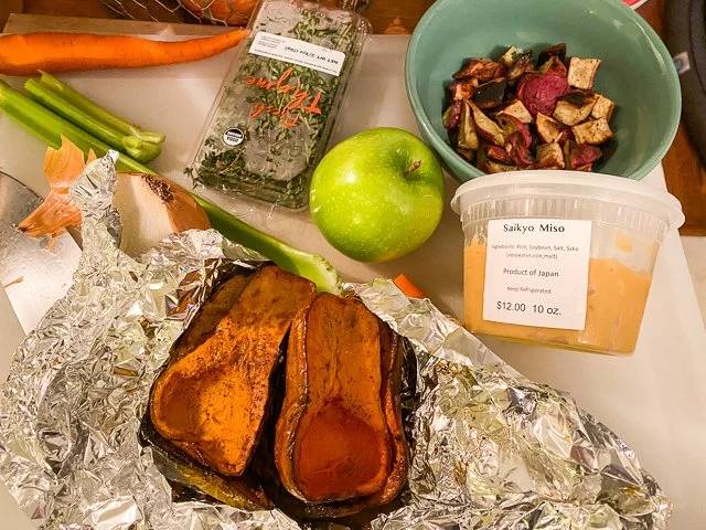 Roasted Honeynut Squash Soup with Apples, Ginger, and Yellow Miso