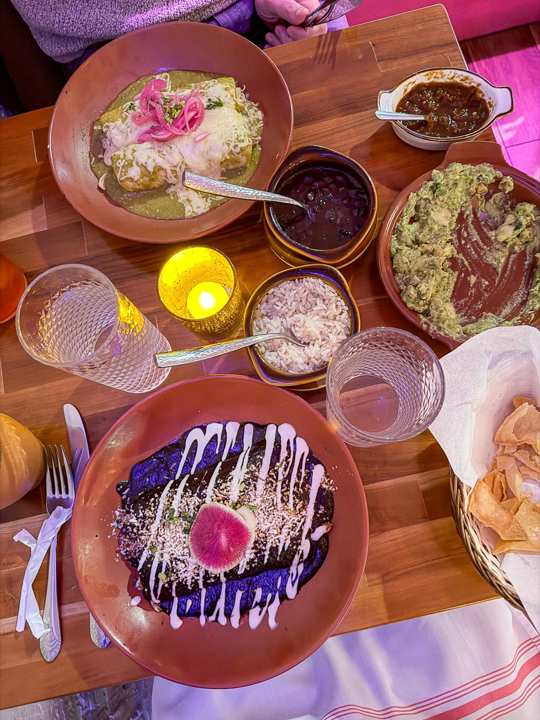Craig thoroughly enjoyed his enchiladas verde with “Swiss-style tomatillo cream salsa” and melted Chihuahua cheese. He gobbled it up faster than I could finish my mole.