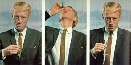 The way it works, when you’re brought into the secret skoaling room, is they pour you a small glass of Aquavit (caraway flavored liquor). You are told to gaze at the camera seductively, as von Sydow does in the first photo, then to tilt your head back and down the Aquavit (which most certainly burns your throat), and, finally, to look back at the camera defiantly. Nils and Dave spell it out quite clearly on their blog: