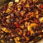 The trick, here, is to develop deep, dark flavor that matches the deep, darkness of the lentils themselves.