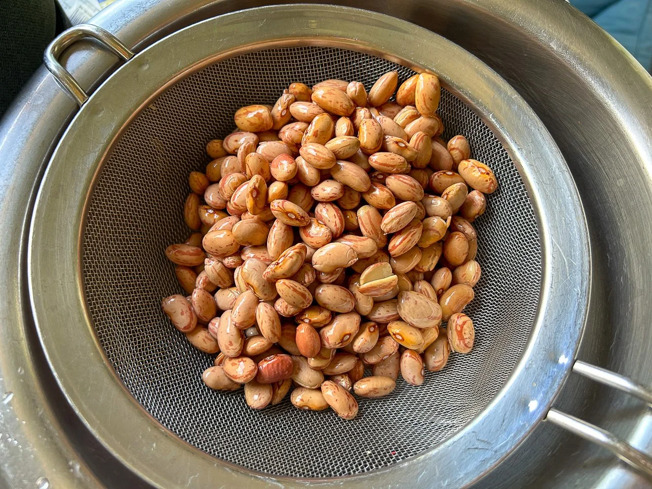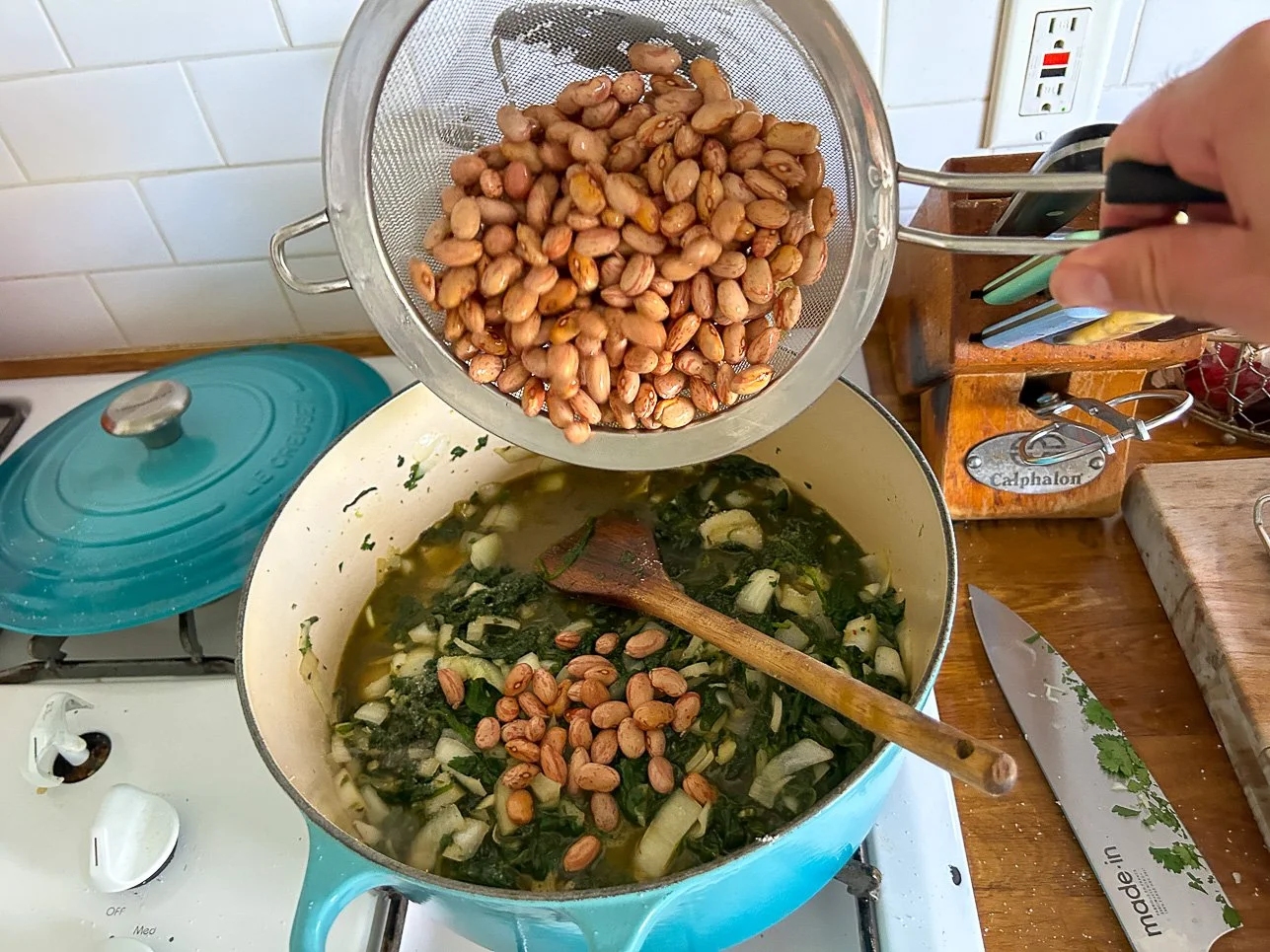 As dedicated readers may recall, I recently ordered Borlotti Beans from Italy as part of a package that I bought from Gustiamo (it led to this article about pistachios for Food52). This recipe calls for dried cannellini beans or dried black eyed peas, but knowing that the cook time was in the same ballpark, I soaked the borlottis (which are also known as cranberry beans) overnight and then added them to the mix, along with four cups of water and a good pinch of salt.
