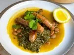 Stir the lemon juice into the beans and spinach and place the seared merguez on top. Cover and continue to braise until the beans are tender and the sausage is cooked through, about 30 minutes more. Season with salt to taste.