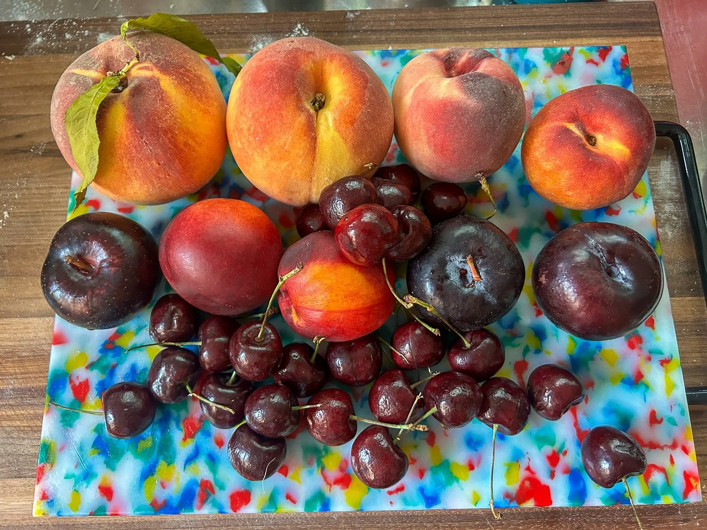 So get thee to the farmer’s market, grab all of the peaches, the nectarines, the plums, the cherries, and get to work on a Stone Fruit Party Pie. It’s an edible last gasp of summer.