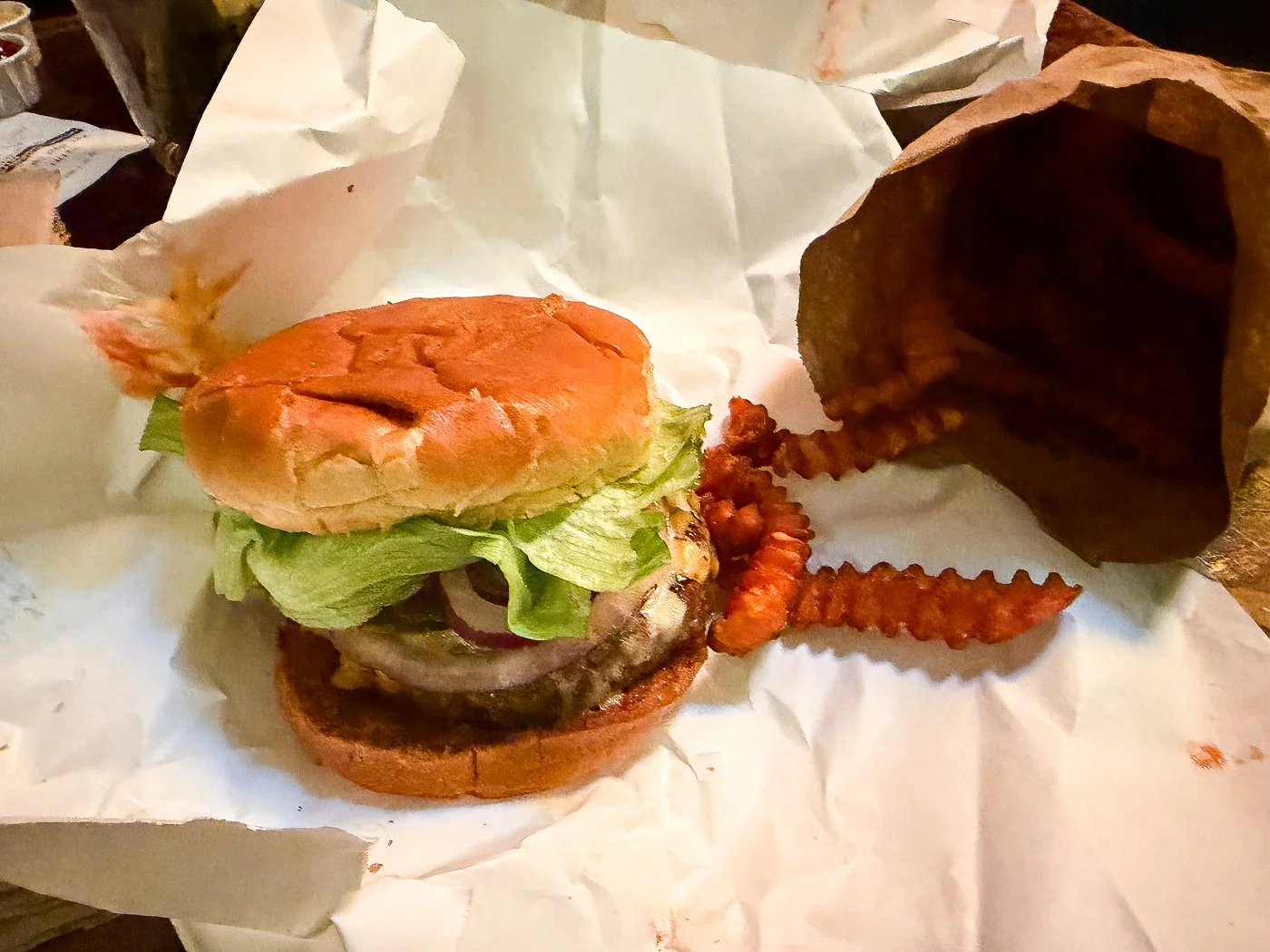 I gotta say: those crinkled sweet potato fries? They were unquestionably great. And the burger is just what you want from an upscale fast food burger, a contradiction in-and-of-itself: it’s juicy, it’s salty, it’s on a toasted bun.