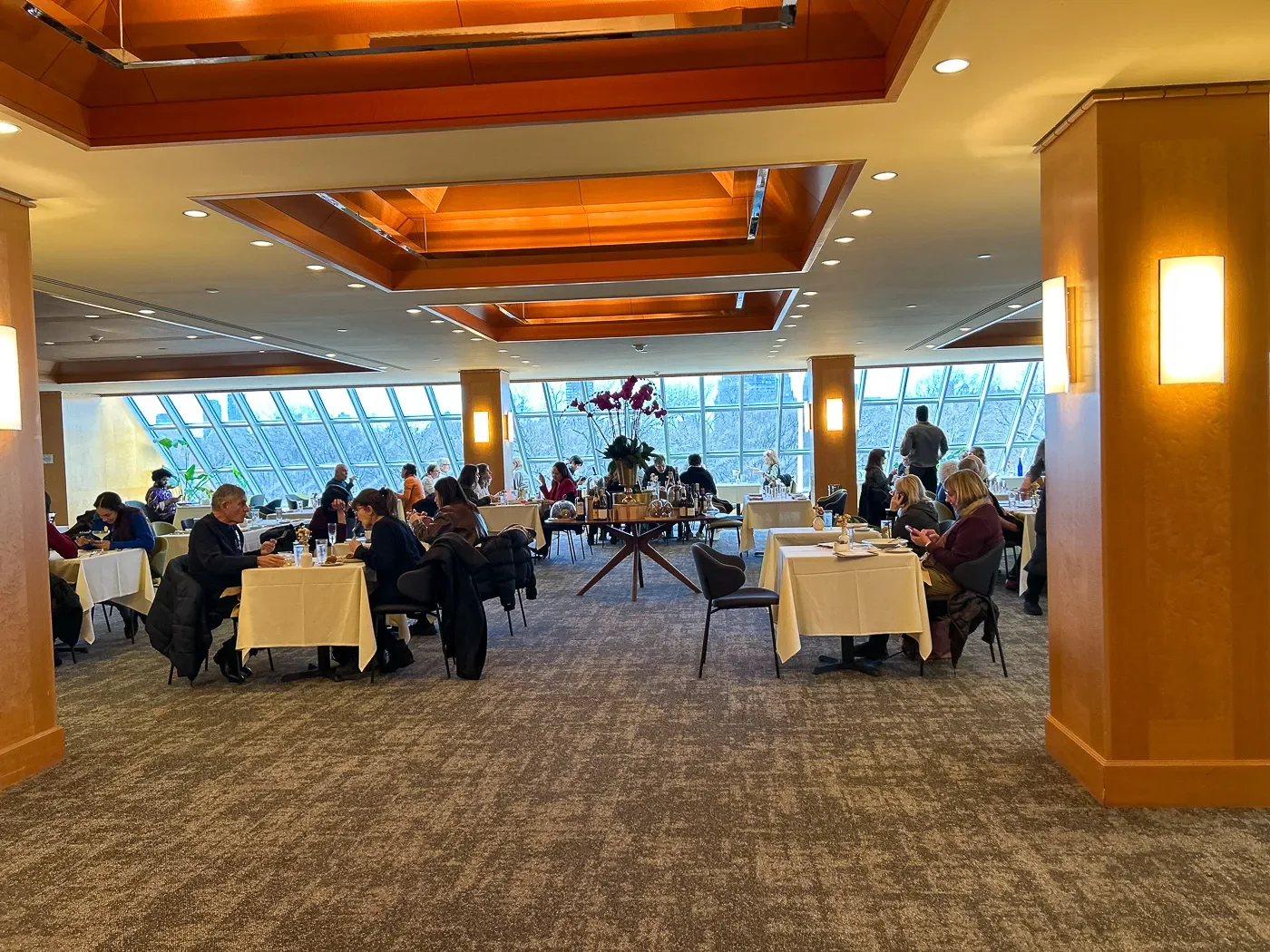 The most remarkable thing about the Met dining room is the space itself: the room is elegant, smacks of history, and its iconic slanted windows overlook an obelisk in Central Park.