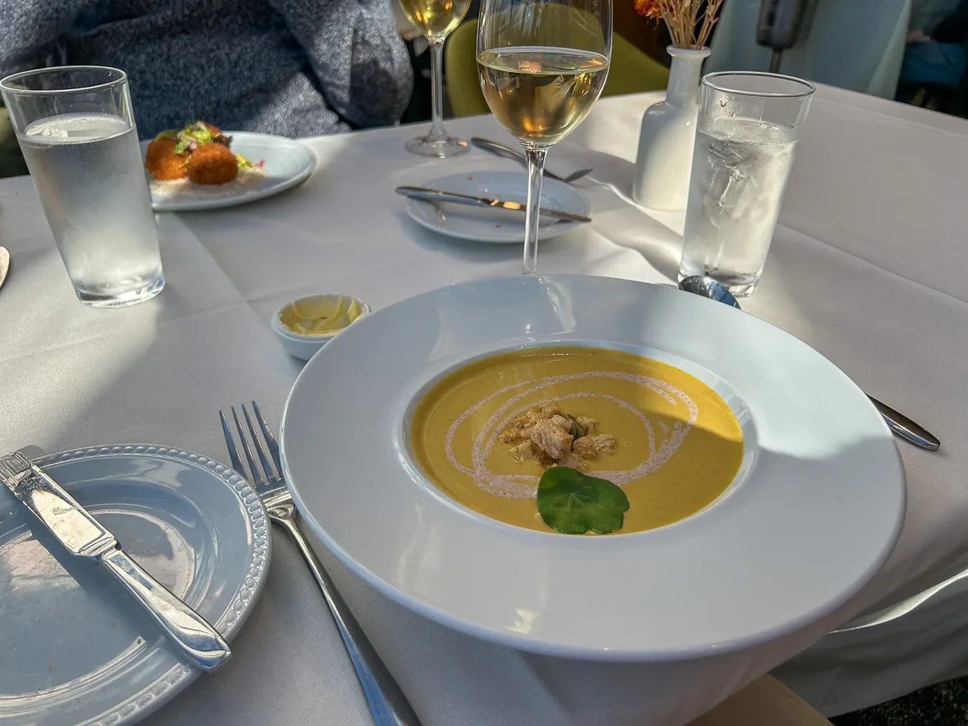 I started with a Butternut Squash soup that’s the best thing you could possibly eat on a freezing day: