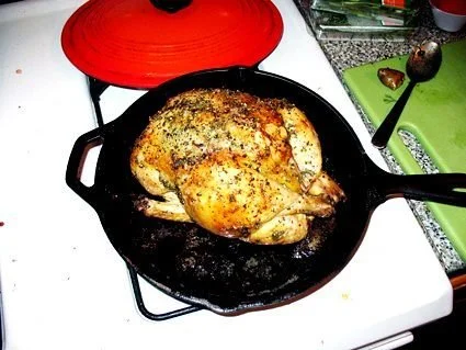 How interesting! I just came home from the outlets with one of those big ol’ Le Creuset oval french ovens, and was thinking, “Gosh, I’d love to try roasting a little bird in here…”Thanks!