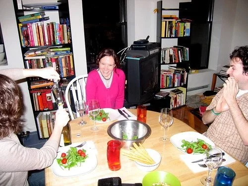 One of the perks of being a person who cooks is that, as a person who cooks, you can get people to do things for you in exchange for cooking. So Stella, my dear friend, agreed to cat-sit for me while I was in Seattle if I agreed to cook her a Southern dinner when I got back. Deal! Here she is waiting for her reward and laughing at something funny: