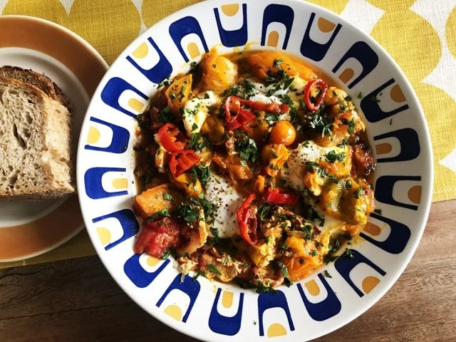 And sometimes — not always, but sometimes — the thing that you make the next day is even better than the thing you made for the dinner party. Case in point: this tomato salad shakshuka which, hyperbole police alert, may be the single best thing that I’ve cooked this year.