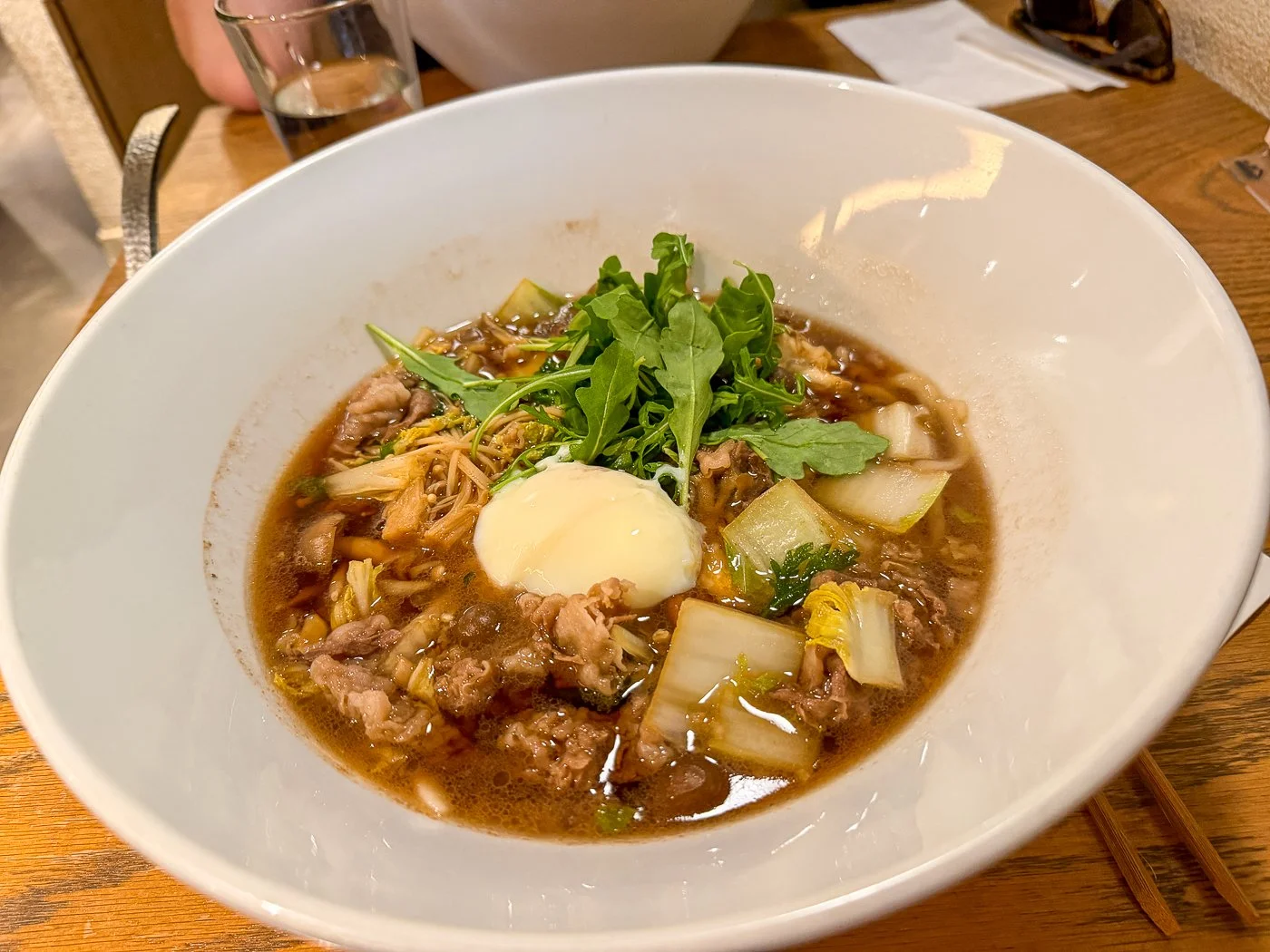 Indeed, the broth was kind of sweet; also rich and umami-filled. The tangle of mushrooms was a bit hard to eat — I have a fear of choking, so factor that in — and the Wagyu was more on the fatty side. But the Udon noodles were nice and thick and hit the spot.