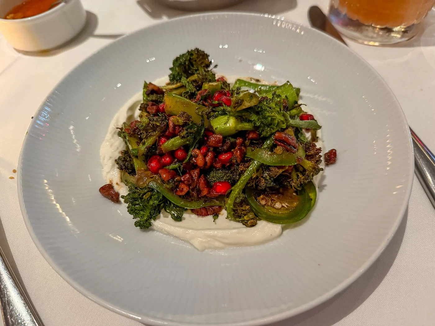 What arrives is an inventive tangle of flash-fried broccoli served over yogurt with pomegranate seeds. May not be as sexy as a Caesar, but it’s way more novel and fun to eat.