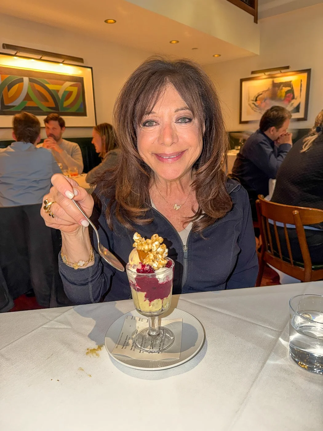 That said, mom picked the winner dessert-wise: “Sweet Corn Sundae with Sweet Corn Gelato, Blackberry Compote, Caramel Corn.”