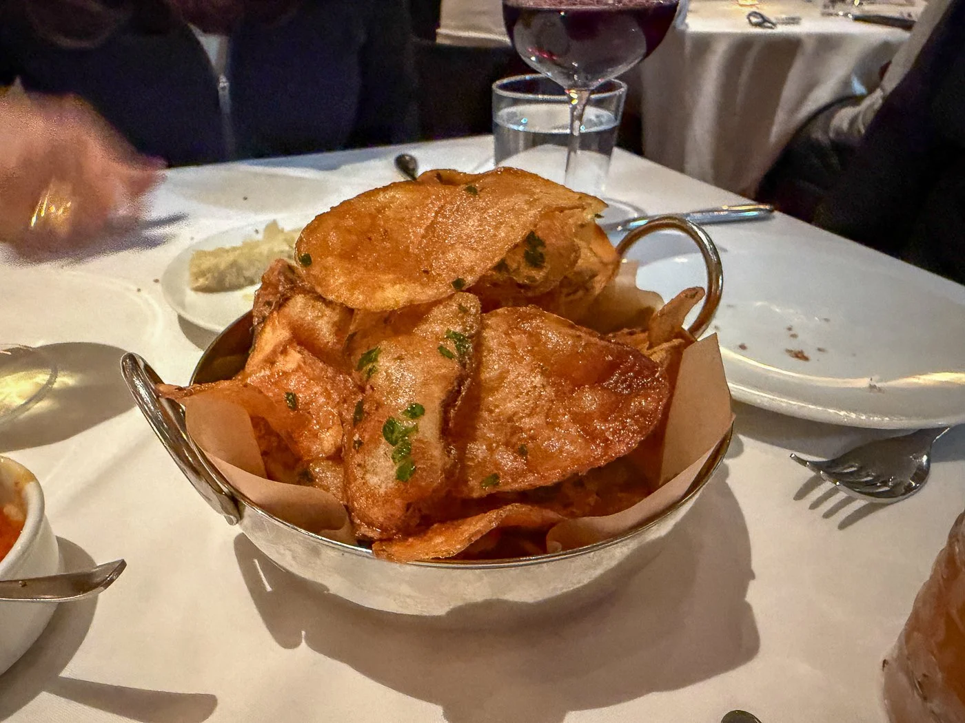 We come to this place for magic and magic is what you will receive here. For starters, there’s the room which feels like the chic dwelling of a sophisticated art collector. The servers are all trained via the Danny Meyer handbook: accommodating, thoughtful, real. And then there’s the food. It’s all stellar; starting with the garlic potato chips, that you see above.
