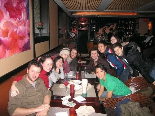 “That was the restaurant,” I said. “The table’s not ready. They said we should come at 8.” We were outside the Washington Square Hotel. “We could go in here for a drink,” I suggested. The Washington Square Hotel is Craig’s favorite watering hole in New York. So he obliged and we navigated our way through the lobby, down the corridor, down the stairs and into the wide bar where Craig looked for a table. At the back he saw a large group that instantly yelled, “Surprise!” It was all of his friends, just like I’d arranged: