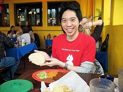 The biggest revelation from my trip is illustrated in the lead photo. That’s my new best friend Cliff–Craig’s editor Jenny Lee’s fiance–who, along with me, had lots of time to kill as Craig and Jenny worked the festival. What Cliff is holding in that picture is my favorite culinary discovery from Austin, Texas: that, my friends, is a fresh tortilla.