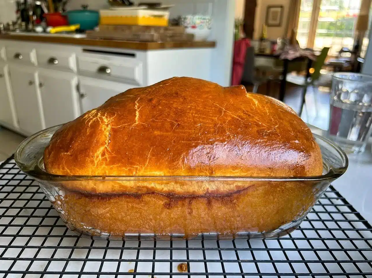 Bake for 35 to 45 minutes, or until the tops and sides of the loaves are completely golden brown. Let cool in the pans on wire racks for 30 minutes, then turn the loaves out of the pans and continue to cool on the racks. The bread can be stored tightly wrapped in plastic wrap at room temperature for up to 3 days or in the freezer for up to one month.